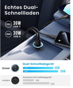 - Stabiles Laden über Unebenheiten: Verbessert mit aufgerüsteten Metallclips für einen sicheren Sitz im Zigarettenanzünder. Dieses Autoladegerät bleibt auch auf holprigen Fahrten fest an seinem Platz und gewährleistet unterbrechungsfreies, stabiles Laden.