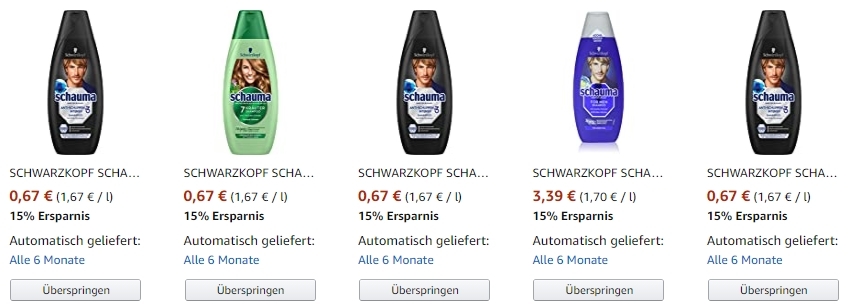 Denn bei Amazon bekommt man aktuell auf unbestimmte Zeit nun versch. Schwarzkopf Schauma Haarshampoos für 0,82€/Flasche.