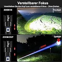 - LED Taschenlampe mit 10.000 Lumen, starkem P70.2 Chip und bis zu 1000m Reichweite, ideal für Outdoor, Notfälle und Camping.