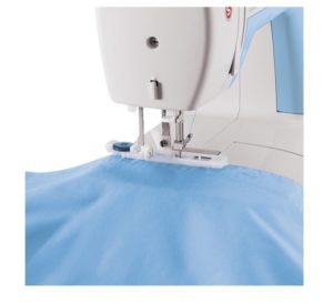 - Extra hoher Nähfußhub bietet viel Platz unter dem Nähfuß für voluminöse Stoffe