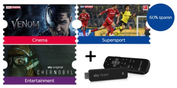 *TOP* Sky Ticket-Knaller: Cinema + Entertainment + Supersport & Sky-Stick für einmalig 29,99€
