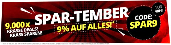 Bei SportSpar bekommt ihr bis Montag 10 Uhr 9% Rabatt auf Alles.