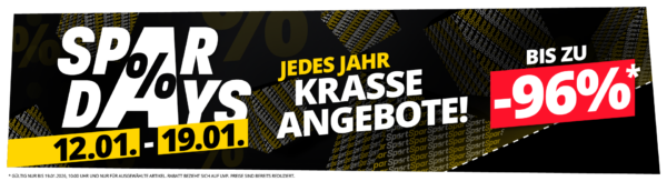 Neue Aktion seitens SportSpar, dort sind die Spardays mit bis zu 96% Rabatt gestartet.
