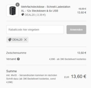 Nutzt den Gutschein DEAL20 und schon kommt ihr auf den Preis
