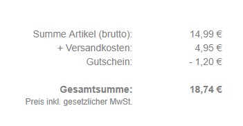 Die Versandkosten entfallen übrigens ab einem Bestellwert von 40€