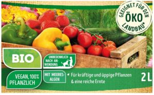 - Inhaltsstoffe: Organischer Dünger, NK 3,5-5, flüssig, minderchloridhaltig – für kräftige und üppige Pflanzen und eine reiche Ernte