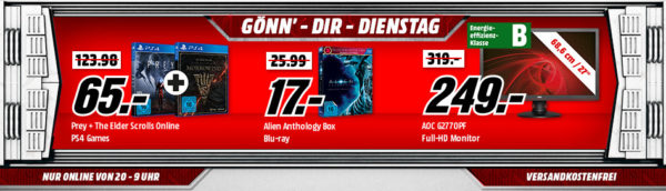 Es ist bei Mediamarkt wieder soweit – heute ist wieder „Gönn‘ dir Dienstag“ angesagt, welcher bis Morgen 09:00 Uhr läuft.