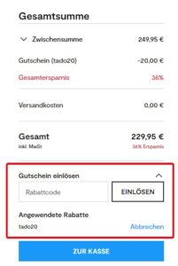 Nutzt den Gutschein TADO20 und schon kommt ihr auf den genannten Preis.