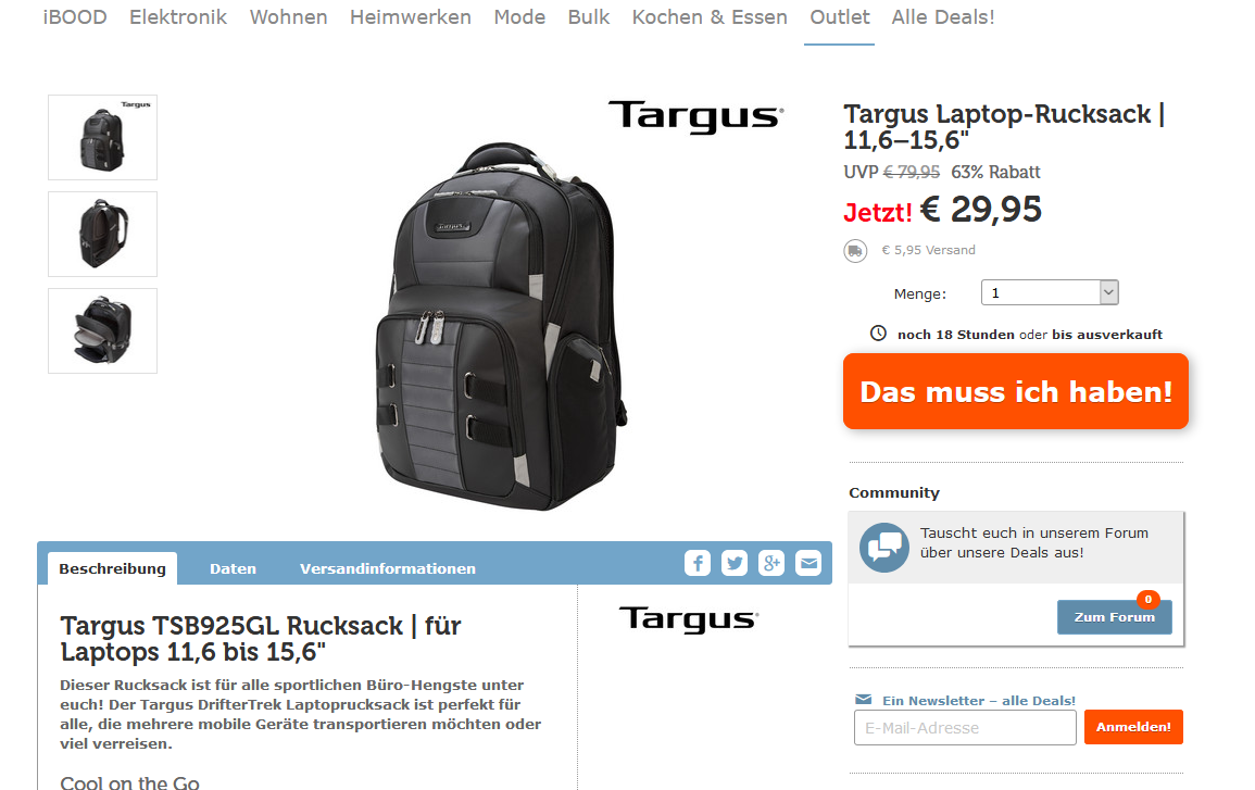 Bei Interesse, schaut euch den Rucksack doch einfach mal bei iBOOD genauer an! Vielleicht findet ihr daran ja Gefallen. 🙂