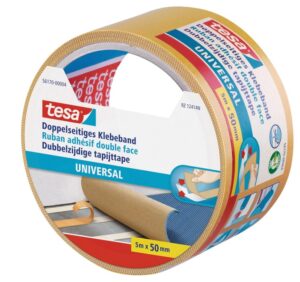 - Lieferumfang: 1 tesa Doppelseitiges Klebeband Universal, 5 m x 50 mm