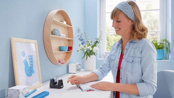 - Dank des Anti-Rutsch-Bodens, der robusten Halterung für den Klebefilm & der scharfen Abrisskante ermöglicht der tesa Klebebandroller ein unproblematisches Kleben – selbst mit einer Hand