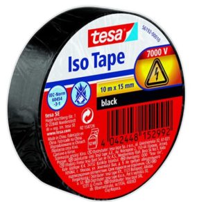 - tesa Isolierband Maße: 10 m x 15 mm – Farbe: Schwarz – rückstandsfrei wieder entfernbar – in zahlreichen Farben erhältlich: Schwarz, Weiß, Rot, Blau und Grün-Gelb