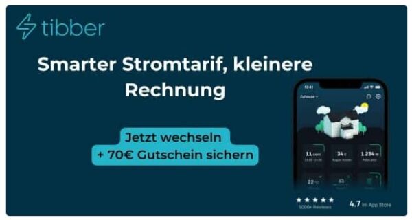 - Tibber: 70€ Gutschein für dynamischen Stromtarif