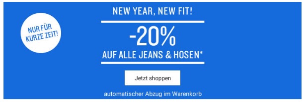 Bei Tom Tailor bekommt ihr aktuell 20% Sofortrabatt auf alle Jeans und Hosen im Onlineshop.