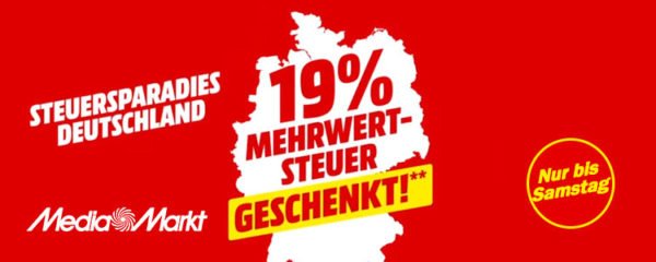 *ENDET UM 12 UHR* MediaMarkt: 19% Mehrwertsteuer geschenkt (=15,97% Rabatt auf Alles) – Beispiele und Fakten