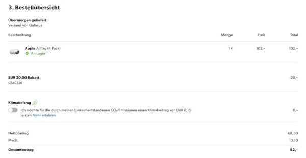 Starkes Angebot bei Galaxus! Dort bekommt ihr die Apple AirTag 4er-Pack für 82€ (Vergleichspreis ~89€) Ersparnis ~7€