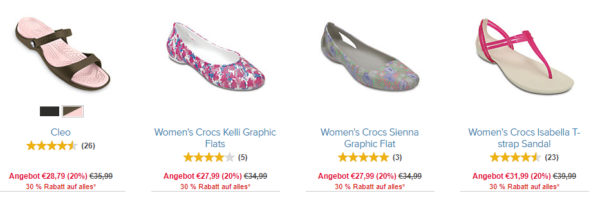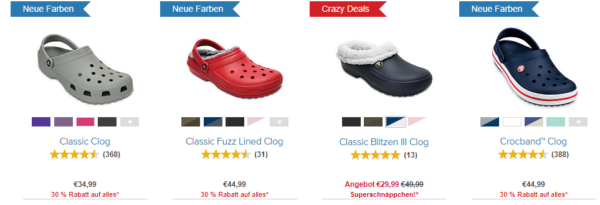 *TOP* Crocs mit 30% Rabatt auf Alles + 30% Gutschein (ab 50€ MBW) + VSK-frei