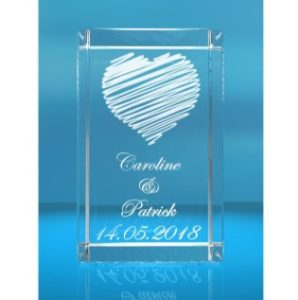 - Laserinnengravur Herz mit zwei Wunschnamen + Datum im Hochformat mittels der 3D Tone Technologie