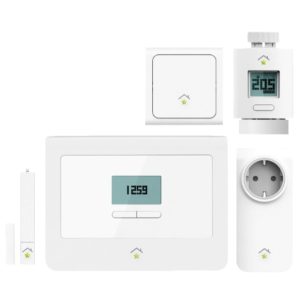 Das innogy SmartHome Paket Energie beinhaltet eine Zentralstation, ein innogy SmartHome Heizkörperthermostat, einen Tür-/Fenstersensor, einen Zwischenstecker und einen Wandsender. Zusammen ermöglichen die Komponenten des innogy SmartHome Systems ein sparsamere Nutzung von Heizkörpern und Elektrogeräten durch intelligente Vernetzung einzelner Haushaltsgeräte und Türen/Fenstern.