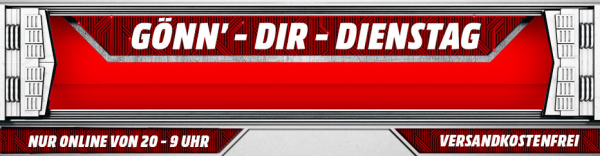 Bei Mediamarkt gibt es heute wieder den „Gönn‘ dir Dienstag“ , welcher bis Morgen 09:00 Uhr läuft.