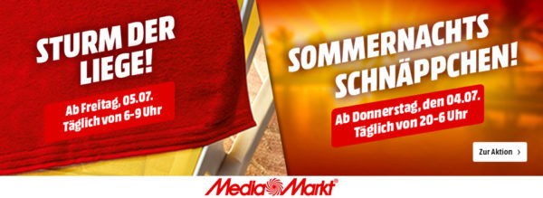 Bei MediaMarkt im Online-Shop startet nun die Sommernachtsschnäppchen-Aktion, die immer von 20 bis 06 Uhr stattfindet (10 Stunden lang also).