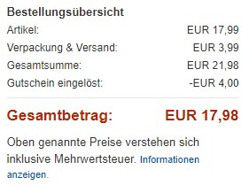 Um auch auf den Preis zu kommen, müsst ihr den Gutscheincode VLKLMZNM verwenden.