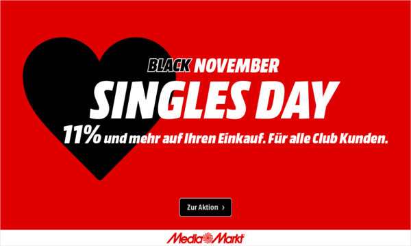 Bei MediaMarkt bekommt ihr am heutigen Singles Day Deals aus verschiedenen Bereichen, am besten ihr stöbert gleich mal selbst durch das Angebot.