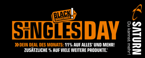 Bei Saturn bekommt ihr am heutigen Singles Day Deals aus verschiedenen Bereichen, am besten ihr stöbert gleich mal selbst durch das Angebot.