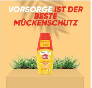- Autan Mückenspray schützt bis zu 8 Stunden vor Mücken, wirkt außerdem gegen Stechfliegen, Zecken und Tigermücken