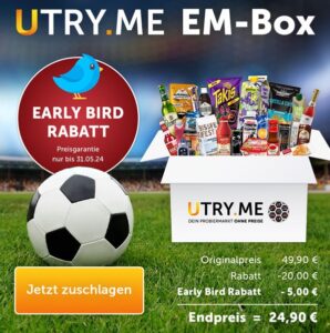Perfekt für die kommende Fußball-EM, bei Utry.me bekommt ihr die Utry.me EM-Box (24 Premium Marken in der Box für den perfekten Fußballabend) für 24,90€ (statt ~50€) Ersparnis ~25€