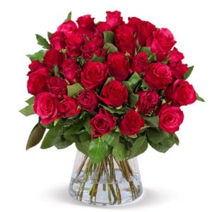 - 33 frische rote Schnittrosen im Bund (50cm Länge)