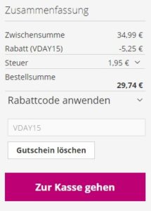 Anfang Januar gab es 44 rote Rosen für € 24,95. Besser keine Blumen kaufen, das ist echt übertrieben.