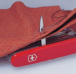 - Grosse Klinge mit Wellenschliff, Kapselheber, Schraubendreher 5 mm, Drahtabisolierer, Holzsäge, Stech-Bohr-Nähahle, Phillips-Schraubendreher 1/2, kl. Waidklinge