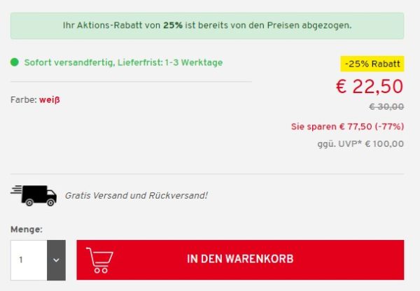 Der Versand wie auch eine eventuelle Retoure erfolgt kostenfrei.