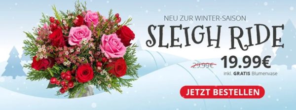 Bei BlumeIdeal bekommt ihr gerade den Rosenstrauß „Sleigh Ride“ für 24,98€ (regulärer Preis: ~35€) Ersparnis ~10€
