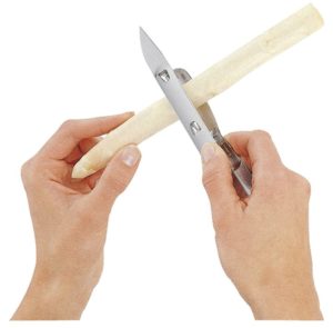 - Mit der beweglichen klinge wird der spargel knapp und gleichmäig geschält für linkshänder und rechtshänder geeignet