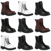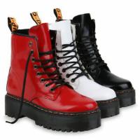 - Damen Plateau Stiefeletten Lack Worker Boots Schnürstiefeletten 832600 Schuhe für 27,90€