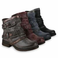- Damen Stiefeletten Biker Boots Leicht Gefütterte Metallic 823977 Schuhe für 21,90€