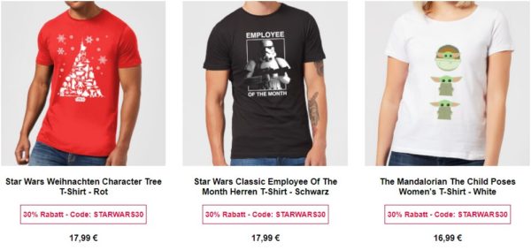 - 30% Rabatt auf Kleidung mit dem Gutscheincode STARWARS30