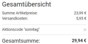 Um auf den Preis zu kommen, müsst ihr den Gutschein Sonntag verwenden.