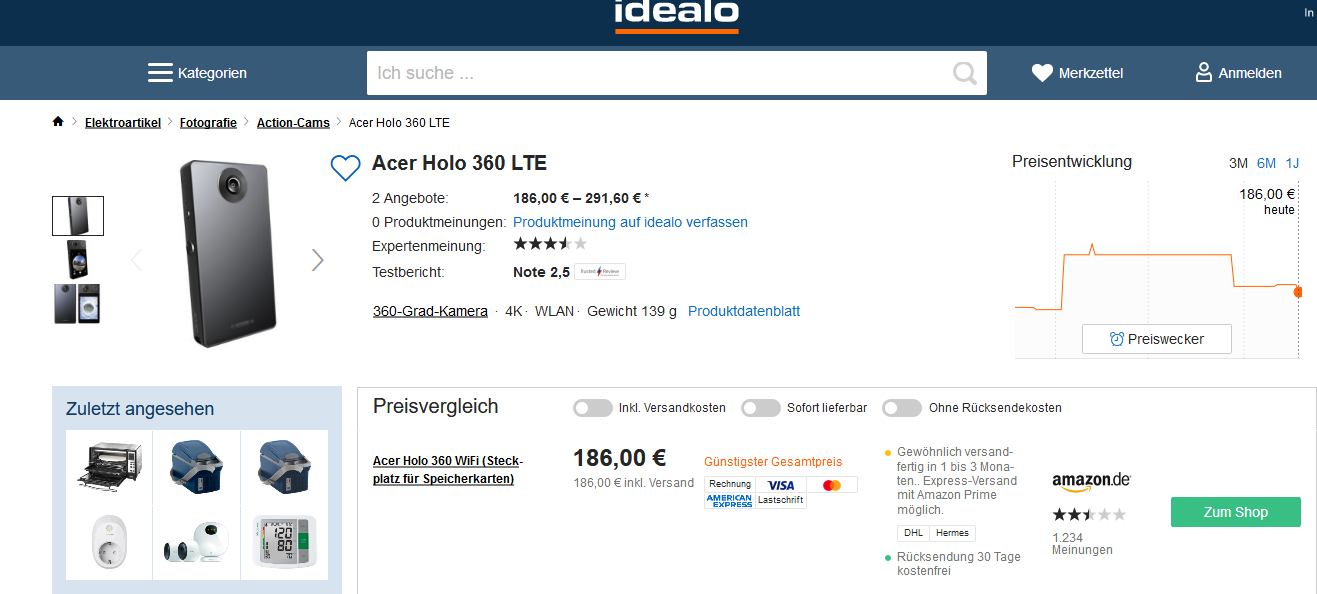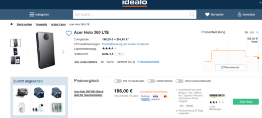 *KNALLER* Acer HOLO 360 Actionkamera für 79€ (statt 186€)
