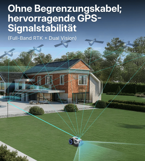 - RTK + Vision + 4G für zuverlässige Abdeckung des gesamten Gartens