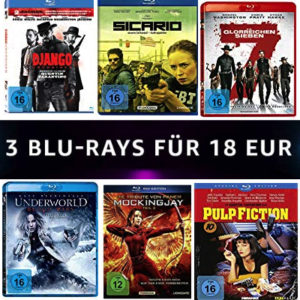 Wähle aus über 1000 Titeln deine Lieblingsfilme aus. Suche dir 3 Blu-rays aus, lege sie in Warenkorb, der Preis wird automatsich auf 18€ angepasst. Die Aktion hat heute begonnen und geht bis zum 16.06.19
