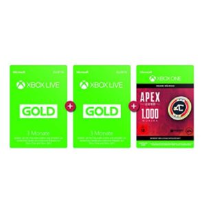 - Bei Bestellung dieses Produkts bekommen Sie 3 Codes zum einlösen auf Xbox Live: 1) Xbox Live Gold Mitgliedschaft 3 Monate 2) Xbox Live Gold Mitgliedschaft 3 Monate und 3) APEX Legends: 1.000 Coins