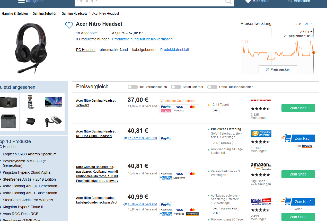 Top Preis mit dem Rabatcoupon -25 Euro bekommt ihr den Acer Nitro Gaming Headset (anpassbares Kopfband, omnidirektionales Mikrofon, 100 dB Empfindlichkeit) rot/schwarz für 16,99 PVG ab 41,99 Euro inkl.Versand.