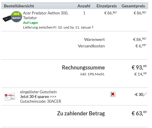 AlphaTier 09.01.2020, 10:51 #Ich komme auf 63,89 € mit dem Gutscheincode.