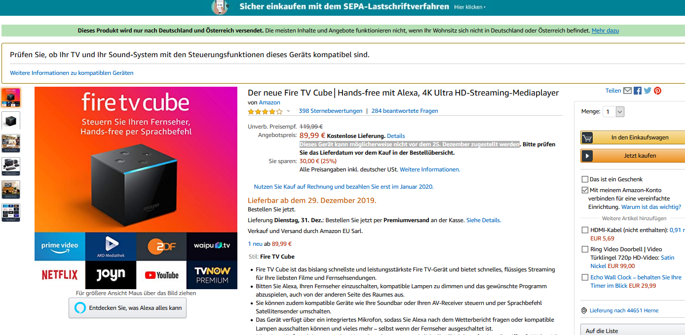 Tayfun 01.12.2019, 10:28 #Bei Amazon Lieferbar nicht vor dem 25. Dezember 🙂