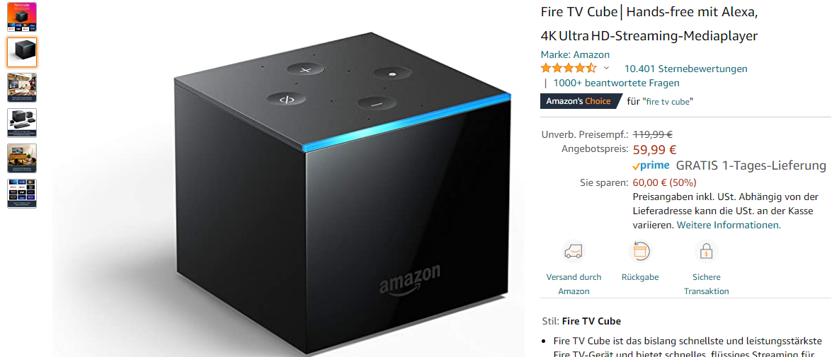 Amazon Fire TV Cube sofort Lieferbar 79 Euro