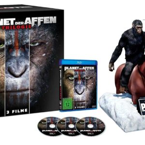 Bei Amazon bekommt man die Planet der Affen Trilogie – Special-Edition mit Caesar Figur gerade für 89,92€. Es sind 3 Blu-ray enhtalten. Die Filme sind ab 12 Jahren freigegeben.
