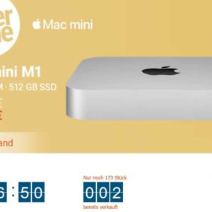 Der Apple Mac mini 2020 M1 ist bis Morgen (28.04.23 – 09:00 Uhr) für 849€ inkl. Versand bei Cyberport im Cybersale erhältlich. Falls der Gutschein CYBERSALE230427 nicht automatisch im Warenkorb eingefügt ist, muss dies manuell noch gemacht werden.